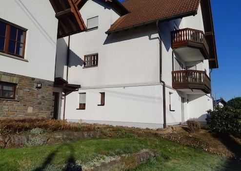Innenausstattung: Die Decken und Wände sind tapeziert und weiß gestrichen. Die Böden im Wohn-Esszimmer sind gefliest in Kombination mit Echtholzparkett, im Schlafzimmer ist Laminatboden verlegt. Badezimmer vollgefliest. Die Küche ist teilgefliest und hat keine Möbel und Geräte. Energetisch modernisiert im Jahr 2022 mit neuen Kunststofffenstern, dreifachisolierverglast und Außenwanddämmung. Modernisierte Brennwert-Gaszentralheizung 2017, wobei jede Wohnung eigen abgerechnet wird. Dies gilt auch für alle anderen Nebenkosten. Die Terrasse bietet einen traumhaften, unbebauten Weitblick über Raubach sowie Sonne bis zum späten Nachmittag.