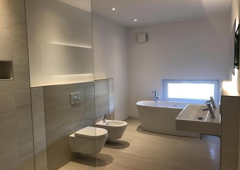 Parkett, hochwertige Steinzeugfliesen, hochwertige Küche mit Markengeräten von Miele und Siemens, Markenarmaturen in Küche und Bädern, elektrische Rolläden an allen Fenstern, Fußbodenheizung, Videogegensprechanlage, jeder Wohnraum ausgestattet mit LAN- und TV-Anschluss, dreifachverglaste Fenster, vierstufige Lüftungsanlage, Designerbadewanne, ebenerdige große Dusche mit Regenduschkopf, Doppelwaschbecken, Toilette und Bidet.