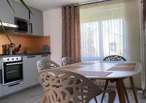 Neue und Voll eingerichtete Küche mit Esstisch und 4 Stühlen.