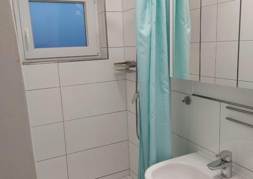 •Modern gefliestes Badezimmer mit Dusche und Tageslicht