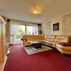 Große Hebe-Schiebe-Elemente über die gesamte Hausbreite lassen viel Tageslicht in das Wohnzimmer und schaffen eine schöne Verbindung zum Außenbereich. Direkt vorgelagert befindet sich die nach Süd-West ausgerichtete Terrasse. Eine Markise sorgt an sonnigen Tagen für angenehmen Schatten und macht diesen Platz zu einem idealen Ort für entspannte Stunden im Freien. Der anschließende Garten ist praktisch angelegt und bietet Raum für Erholung sowie für eigene gärtnerische Ideen.