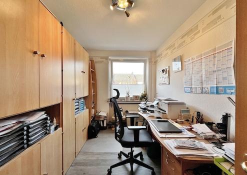 Aus einem der Schlafzimmer führt eine Raumspartreppe auf den teilweise ausgebauten Dachboden. Zwei Räume – darunter ein Durchgangszimmer – sind bereits mit Heizkörpern ausgestattet und bieten zusätzliche Nutzungsmöglichkeiten, etwa als Hobby- oder Abstellräume.