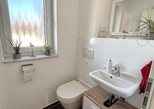 • ein modernes Tageslichtbad mit Dusche und Badewanne