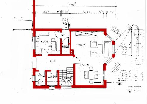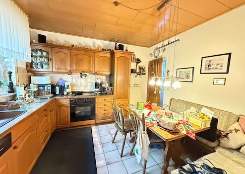Die Küche ist mit einer älteren, jedoch funktionalen Einbauküche ausgestattet, die im Kaufpreis bereits enthalten ist. Die vorhandene Ausstattung ist zwar nicht mehr modern, jedoch gepflegt und voll nutzbar. Auch weitere Möbel im Haus können nach Vereinbarung übernommen werden. Diese sind funktional und bieten insbesondere Käufern, die einen unkomplizierten Einzug oder eine schrittweise Modernisierung planen, einen praktischen Mehrwert.