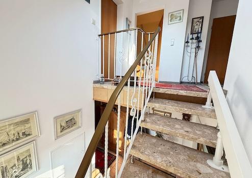 Über das zentrale Treppenhaus gelangt man in das Obergeschoss. Besonders hervorzuheben ist der moderne Treppenlift, der ebenfalls im Kaufpreis enthalten ist und einen komfortablen sowie nahezu barrierefreien Zugang in die obere Etage ermöglicht – ein großer Vorteil für das altersgerechte Wohnen oder bei eingeschränkter Mobilität.