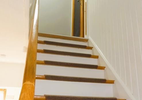 Eine wohnliche Holztreppe führt ins Obergeschoss mit drei Schlafzimmern (2 Kinderzimmer sowie ein großes Elternschlafzimmer mit extra Ankleidezimmer und Zugang zum Balkon) sowie dem schön gestalteten Komfortbad mit Wanne, WC und schönem Waschtisch.