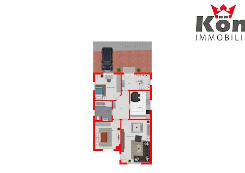 Das Haus umfasst insgesamt sieben Zimmer und drei Badezimmer, aufgeteilt in eine 88 m² große Wohnung im Erdgeschoss, eine 85 m² Wohnung im Dachgeschoss sowie ein 31 m² großes Appartement im Untergeschoss. Jede Einheit ist gut durchdacht und ermöglicht flexible Nutzungsmöglichkeiten. Die Wohnung im Dachgeschoss ist aktuell vermietet. Die Kaltmiete liegt bei 490,- €. Bei Vollvermietung wurde eine Gesamtkaltmiete in Höhe von 1180,- €/Monat erzielt.