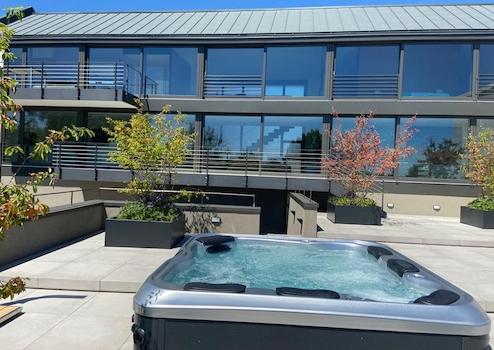 Hochwertiger Villeroy & Boch Außen-Whirlpool auf der Terrasse