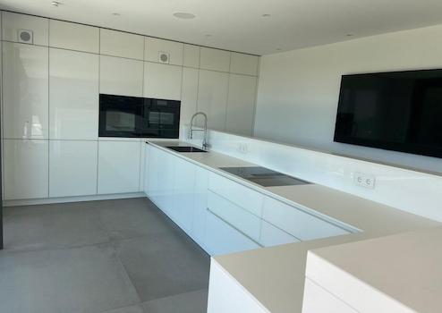 Offene Küche mit hochwertiger, moderner Einbauküche