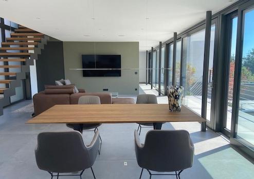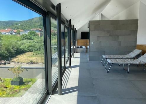 Bei dem Anwesen handelt es sich um eine beim Architekturwettbewerb 2020 höchstbewertete Neubauvilla in Weinbergsrandlage.