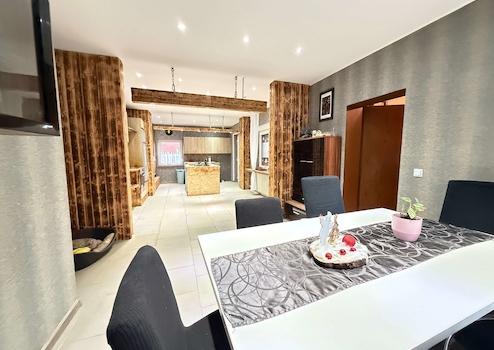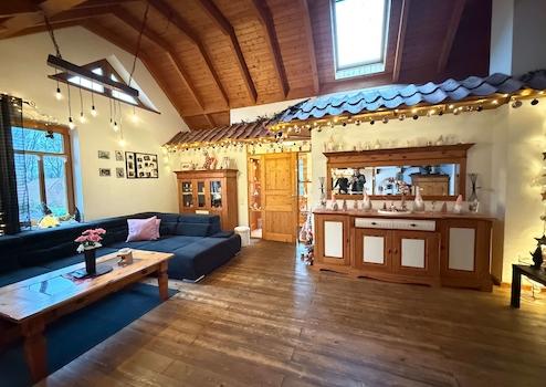 Die obere Wohneinheit überzeugt mit einem offen gestalteten Wohn-/Essbereich, der harmonisch in die Wohnküche übergeht. Sowohl aus dem Wohn- als auch aus dem Küchenbereich gelangen Sie auf den neu geschaffenen, überdachten Balkon – wintergarten ähnlich und ideal für entspannte Stunden zu jeder Jahreszeit.