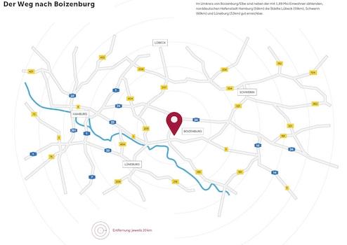 Im wirtschaftlichen Zentrum Norddeutschlands, der Metropolregion Hamburg, arbeiten und leben über 5 Millionen Menschen. Von wirtschaftsgeographischer Bedeutung für die Stadt Boizenburg ist die unmittelbare Nachbarschaft zum sogenannten Oberzentrum Schwerin und den Metropolen Hamburg und Berlin.