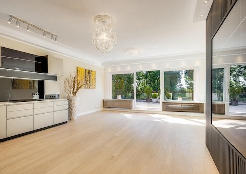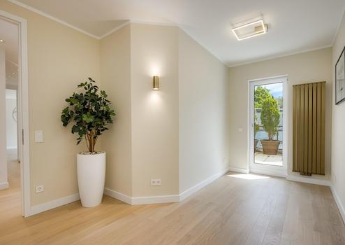 Hier wurde das Dachgeschoss umstrukturiert und durch eine aufwendige Kernsanierung ein veredeltes Neubauniveau erreicht und befindet sich gerade in der Fertigstellungsphase. Dabei wurde diesem Dachterrassentraum zeitgenössischer, moderner Wohnkomfort auf höchstem Niveau eingehaucht.