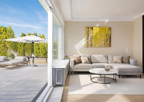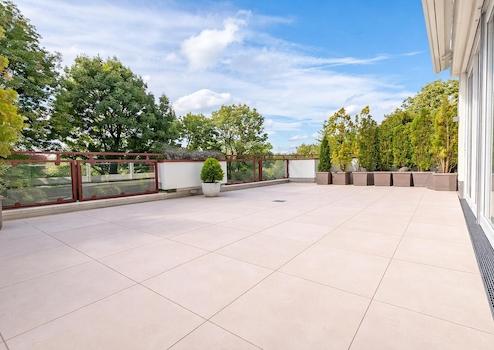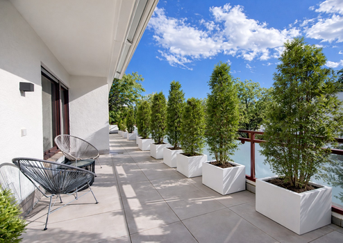 Dieses Outdoor-Refugium über dem Isarhochufer ist ideal geeignet für gemeinsame laue sommerliche Grillabende mit der Familie, Freunden, zum freizügigen Sonnenbaden und zum Seele baumeln lassen. Die elektrische Markise sorgt für angenehmen Schatten an heißen Sommertagen.