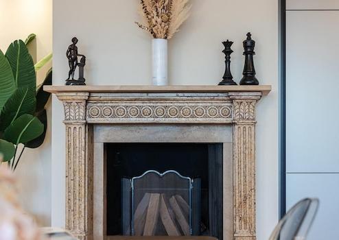 • Offener Kamin mit hochwertiger Marmoreinfassung