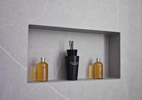 • Integrierte, geflieste Nischenablage