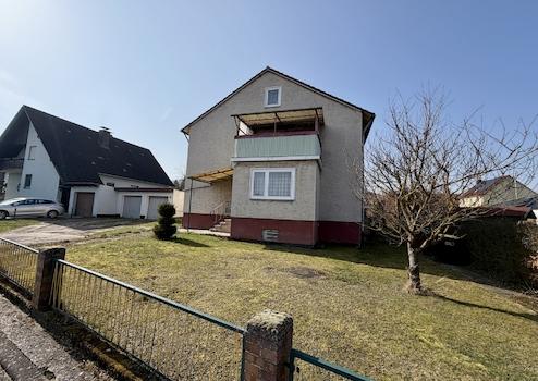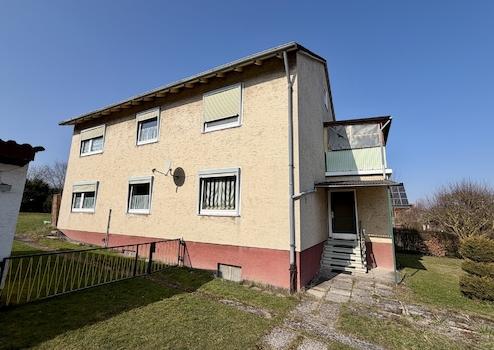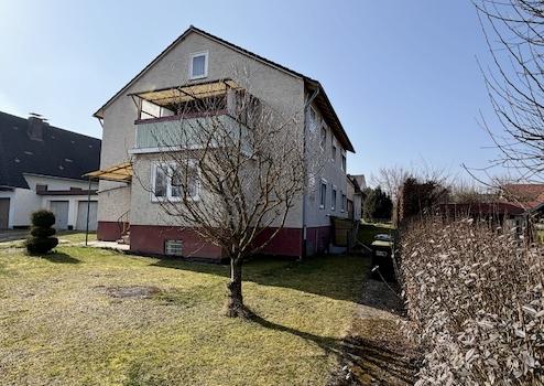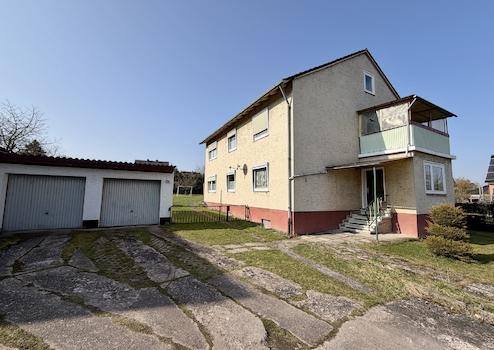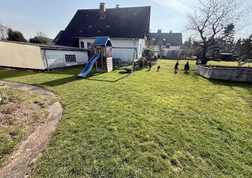 Das in massiver Bauweise in 1966 errichtete Gebäude beinhaltet zwei separate Wohneinheiten mit nahezu identischem Grundriss. Jede Wohnung verfügt über vier Zimmer, Küche und Bad. Die Wohnfläche beträgt jeweils ca. 85 m². Von der Erdgeschosswohnung aus gelangen Sie direkt auf das weitläufige Grundstück, dass mit einer Größe von 1.300 m² und einem aufstehenden Nebengebäude vielfältige Nutzungsoptionen bietet. Weiterhin ist eine Doppelgarage vorhanden. Das Haus ist zudem voll unterkellert. Das Dachgeschoss ist über das Treppenhaus erreichbar und bietet bei Bedarf noch weitere Ausbaureserve.