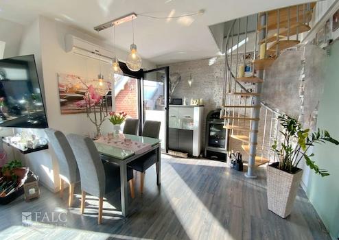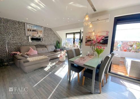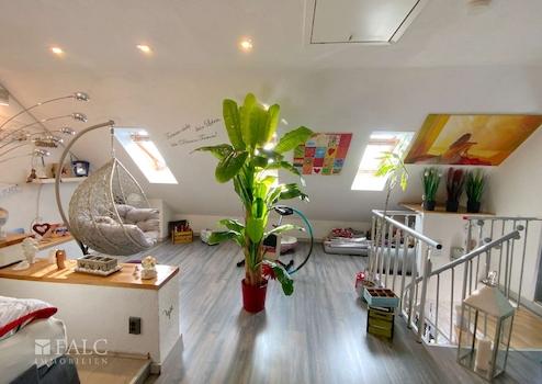 Die komfortable Maisonette-Wohnung befindet sich in einem 1982 erbauten und sehr gepflegten 6-Parteien-Haus in ruhiger, bevorzugter Lage. Über zwei Ebenen im 2. Obergeschoss und im Dachgeschoss über eine innenliegende Wendeltreppe verbunden, bietet diese Wohneinheit viel Platz für Singles und Paare oder eine kleine Familie. Die neue, moderne Marken-Einbauküche lässt keine Wünsche offen. Klimageräte und elt. Rollläden sorgen auch im Sommer für angenehme Temperaturen. Ein gehobenes und geschmackvolles Ambiente versprühen teilweise Steinoberflächen und Rauhputz an den Wänden, sowie hochwertige Böden aus Fliesen, Vinyl und Laminat.
