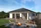 Ein überdachter Terrassenbereich ist eines der Highlights, die der Bungalow Fertighausentwurf 10 bietet. Eine quadratische Grundrissplanung bringt Vorteile mit sich. Alle Räume sind z. B. auf kurzen Wegen erreichbar. In der Planung wurde das Schlafzimmer mit Ankleide und Bad in einer Raumfolge angelegt. Direkt in der Nähe des Hauseingangs befindet sich das Gäste-WC, das optional auch als Duschbad realisiert werden kann. Ein zusätzliches Zimmer, das als Büro, Gäste oder Hobbyraum genutzt werden kann, bietet zusätzliche Flexibilität. Der Wohn-/Ess- und Kochbereich ist auf großzügigen 54,07 m² repräsentativ angelegt. Eine praktische Speisekammer ist neben der Küche geplant. Die Planung ist geeignet für Singles, Paare oder eine Kleinfamilie.