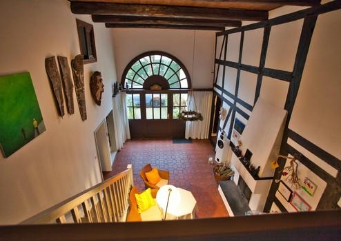 Dieses besondere Anwesen verbindet historischen Charakter mit einem großzügigen Raumangebot. Das Herzstück des Hauses ist die beeindruckende westfälische Deele, die dem Gebäude seinen unverwechselbaren Charme verleiht. Im Innenbereich sorgen teilweise sichtbare Fachwerkelemente und massive, historische Kalksteinwände für eine warme, authentische Atmosphäre.