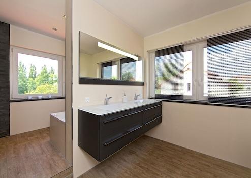 Die Außenwände im Passiv-Haus-Standard und eine sparsame Heiztechnik mit integrierter Wohnraumlüftung und Wärmerückgewinnung, garantieren einen geringen Energieverbrauch und ein fantastisches Raumklima, das insbesondere Allergiker aufatmen lässt.