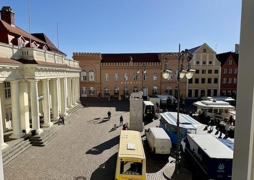Die Wohnung liegt direkt am Marktplatz in der historischen Altstadt von Schwerin. Einkaufsmöglichkeiten, Bäckereien, Supermärkte, Banken sowie weitere Einrichtungen des täglichen Bedarfs befinden sich in unmittelbarer Nähe.