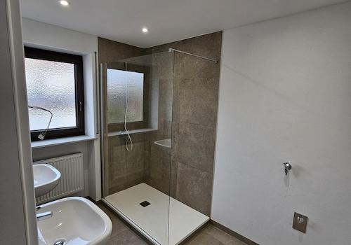 Badezimmer mit Badewanne und Dusche