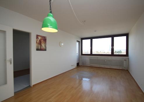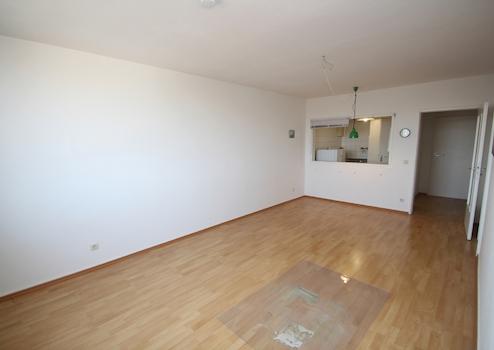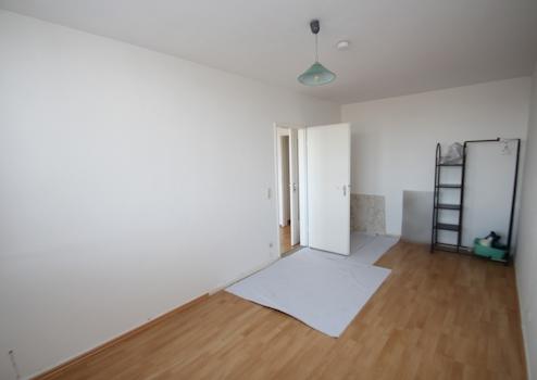 Das Wohnzimmer bildet den Mittelpunkt der Wohnung und bietet ausreichend Platz für einen gemütlichen Wohn- und Essbereich. Von hier aus gelangen Sie auf die Loggia, die den Wohnraum nach außen erweitert und mit ihrem schönen Ausblick zum Entspannen einlädt. Auch das Schlafzimmer ist gut geschnitten und mit Laminatboden ausgestattet.