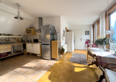 Die Wohnung selbst erstreckt sich über ca. 84 m² und bietet einen außergewöhnlichen, individuellen Grundriss. Mit drei Zimmern, einer offenen Küche, einem modernen Badezimmer sowie einer offenen Galerie bietet sie ein einzigartiges Wohngefühl. Das Highlight: Die großzügige, sonnige Dachterrasse mit Blick ins Grüne lädt zum Entspannen ein und garantiert viele Stunden in der Sonne.