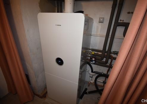 In der Diele mit dem Treppenhaus ins Obergeschoss ist auch die neue Heizung (Bosch) installiert.