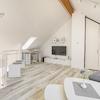 Vom Wohn-/Essbereich erreicht man über die freilaufende Treppe den offenen Galeriebereich. Die beeindruckende Blickachse ins Wohnzimmer wird Sie ganz bestimmt begeistern. Hier befindet sich ein zweiter Wohnbereich, der auch als separates Zimmer oder Schlafzimmer einteilbar wäre.