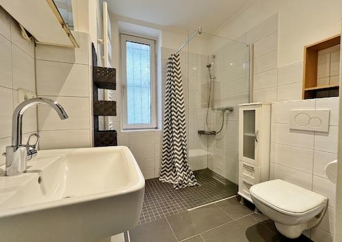 - Duschbad mit ebenerdiger Dusche, wandhängendem WC, Handtuchtrockner aus 2013