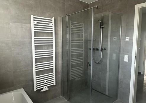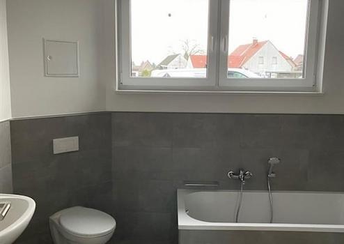 Alle Wohneinheiten verfügen über eine Terrasse oder einen Balkon rückwärtig vom Gebäude. Das Badezimmer ist modern ausgestattet – großformatige Fliesen, Badewanne, bodentiefe Dusche mit Thermostat-Mischbatterie, WC mit absenkbarem Toilettendeckel, Handwaschbecken und Handtuchheizung gehören zum Inventar. An allen Fenstern befinden sich elektrische Außenrollläden sowie ein Insektenschutz. Der Hauswirtschafsraum bietet Platz für den Staubsauger, Reinigungsmittel oder als Ablage von Gegenständen, die sonst in der Wohneinheit keinen Platz finden. Die Küche steht zur unentgeltlichen Nutzung zur Verfügung.