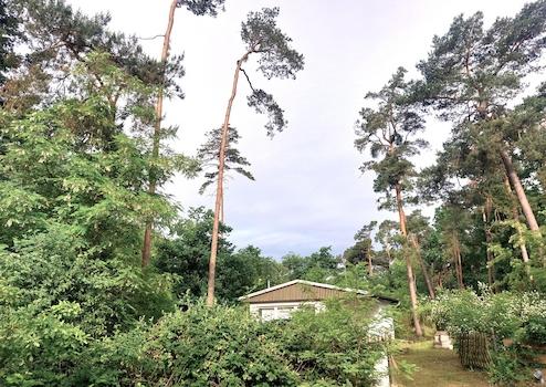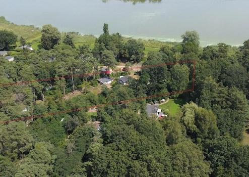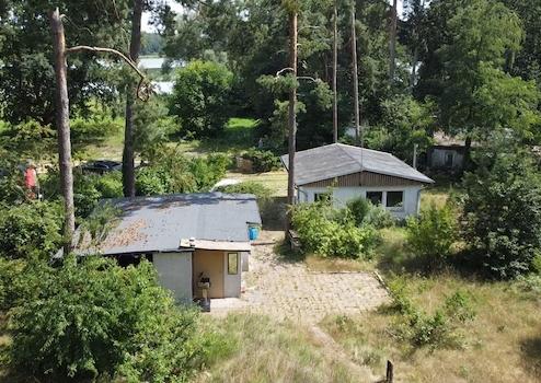 Auf dem Grundstück befinden sich aktuell 9 Bestandsbungalows unterschiedlichen Alters und unterschiedlicher Substanz. Bis zu drei davon könnten erhalten und in ein neues Konzept integriert werden oder sind für Übergangsnutzungen geeignet. Das Grundstück eignet sich ideal für eine parkähnliche Wochenendhaus- Siedung mit gehobenem Charakter, ohne das Einzelparzellen durch Zäune abgetrennt werden müssen. Landschafts- und gartenbauseitig könnte eine aufgelockerte, mit interessanten Sichtachsen versehene Busch- und Heckenbegrünung mit kleinen Naturteichen geschaffen werden, die Privatsphäre und Ruhe unterstreichen.