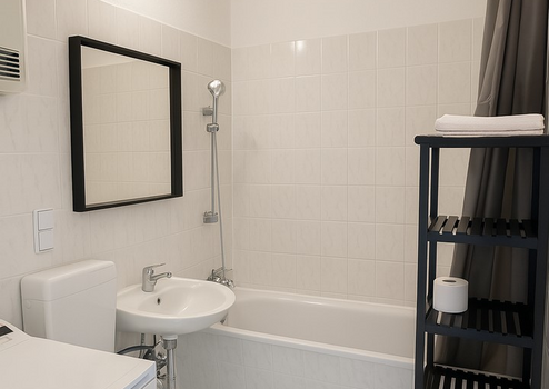 Ein funktionales Bad & Waschmaschine – alles da!