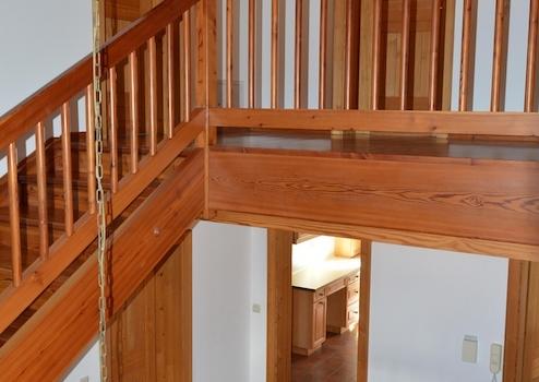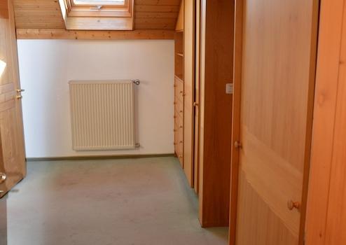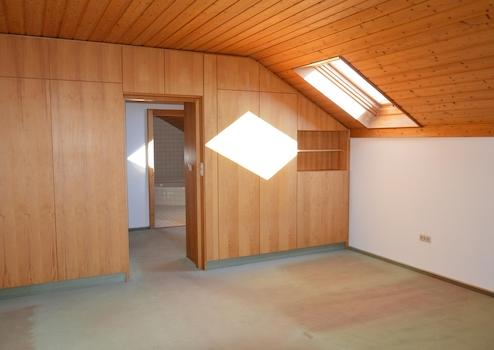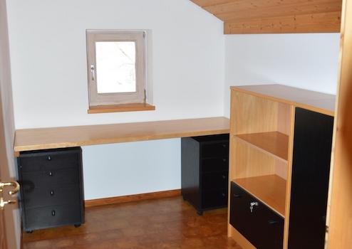 Über die Lärchenholztreppe erreichen Sie zunächst ein Zwischengeschoss mit zwei kleineren Räumen, die sich ideal als Hobbyraum und Büro nutzen lassen. Von dort gelangen Sie weiter ins Obergeschoss.