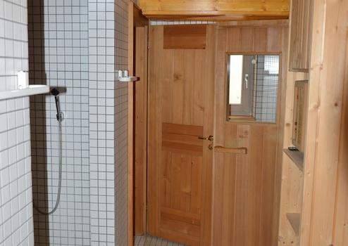 Über den Eingangsbereich gelangen Sie ebenfalls über eine Treppe in das Untergeschoss, wo Sie den großzügigen Saunabereich (23 m²) mit Fußbodenheizung, Dusche, WC und Ruheraum (bietet Platz für Ruheliegen) finden. Darüber hinaus befinden sich im Untergeschoss ein großer und ein kleiner Kellerraum, sowie der Heizraum. Vom Kellerbereich gelangen Sie außerdem in den Fahrradkeller und die großzügige Doppelgarage.