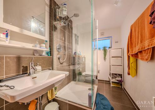 Über die Innentreppe gelangen Sie in das Untergeschoss, das dank seiner großzügigen Fensterflächen hell und einladend wirkt. Hier befindet sich das ruhig gelegene Hauptschlafzimmer, das Ihnen maximale Privatsphäre bietet. Ergänzt wird diese Etage durch ein stilvolles Designer-Badezimmer mit hochwertiger Dusche, geschmackvollen Materialien und einem klaren Design, das Funktionalität und Ästhetik harmonisch verbindet.