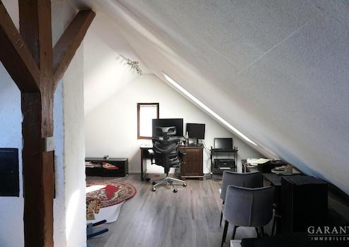 Der ausgebaute Dachspitz bietet zusätzlichen Raum und wird derzeit als Büro genutzt, ideal für Homeoffice oder kreative Nutzungsmöglichkeiten.
