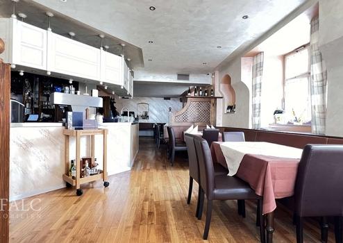 Eine langjährige und berühmte Gastronomie ist ein zentraler Bestandteil dieses Anwesens. Im Erdgeschoss befindet sich eine großzügige Pizzeria mit einem gemütlichen Innenbereich, in dem Gäste köstliche Speisen genießen können. Darüber hinaus verfügt die Gastronomie über eine geräumige Außenterrasse, die sich ideal für gesellige Veranstaltungen, Feiern oder andere Anlässe eignet. Dieser Bereich bietet Platz für eine beträchtliche Anzahl von Gästen und schafft eine einladende Atmosphäre im Freien.