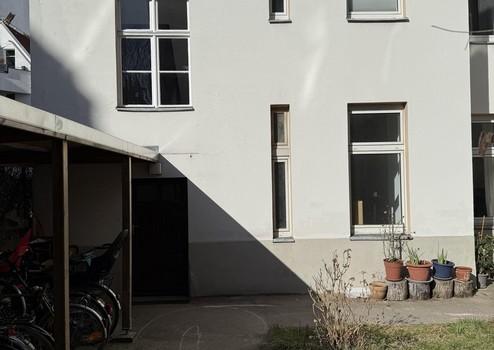 Die Wohnung befindet sich im Erdgeschoss des Seitenflügels mit Blick in den grünen Innenhof.
