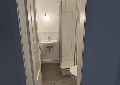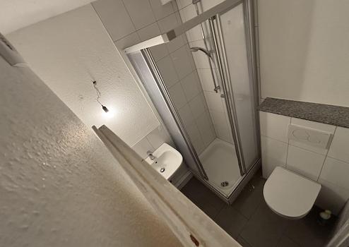Das kleine, modern gestaltete Duschbad ist zeitgemäß ausgestattet und funktional geschnitten. Der Boden der gesamten Wohnung ist durchgehend gefliest, was für ein einheitliches und pflegeleichtes Wohnkonzept sorgt.