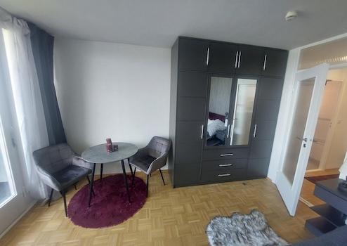 Dieses frisch sanierte 1-Zimmer-Apartment besticht durch seine moderne Ausstattung und stilvolle Möblierung. Der offene Wohnbereich bietet ausreichend Platz zum Wohnen und Arbeiten. Große Fenster lassen viel Tageslicht herein und öffnen den Blick auf den Westbalkon, von dem Sie einen beeindruckenden Panoramablick genießen können – perfekt für entspannte Abende.