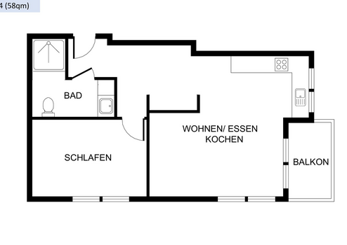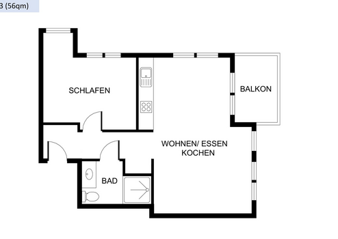 Die sehr helle Wohnung ist 59 qm groß und verfügt bei einer Deckenhöhe von 2,70m neben einem Schlafzimmer und Badezimmer mit großzügiger ebenerdiger Dusche über einen lichtdurchfluteten offenen Wohn/Essbereich mit offener Küche. An diese grenzt auch der Balkon, von welchem aus man in den Wald blickt.
