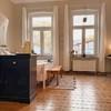 Wohnung 1 (Hochparterre) verfügt über 4 große Zimmer (Küche, Wohnzimmer, Schlaf-/ Arbeitszimmer, Zimmer), ein Vollbad (Badewanne und ebenerdige Dusche) und eine Terrasse (20qm). Die Deckenhöhe im Hochparterre beträgt 3,70m. Die Wohnung ist hochwertig ausgestattet - jeder Raum verfügt über eine Massivholzdielung, Küche, Wohnzimmer und Schlafzimmer sind mit Stuckelementen versehen. In jedem Raum liegt eine TV-Dose (Kabel) und zwei Netzwerkdosen an. Die Netzwerkdosen können über die Netzwerk-Verteilung (im Flur) aufgeschaltet werden. Die gut ausgestattete Einbauküche wurde mit einer massiven Eichenholz-Arbeitsplatte versehen und verfügt über hochwertige Elektrogeräte (Miele, Bosch). Es ist ein Gasherd mit 5 Flammen verbaut. Das Vollbad wurde mit Elementen von Villeroy & Boch und anderen Marken versehen.