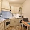 Die Küche verfügt über eine Sitzgelegenheit mit Tisch und 2 Stühlen sowie einem Herd/Backofen, Kühl-/Gefrierkombination und Waschmaschine. Es gibt ein zusätzliches Parkdeck für Besucher.