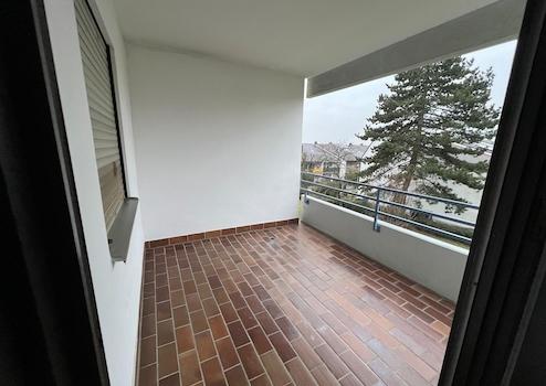 Der Zugang zum teilweise überdachten Südbalkon erfolgt über das Wohnzimmer und lädt zum Verweilen mit Blick in die Weinberge ein.