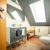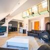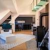 einladend. Auf dieser Etage befindet sich noch ein großzügiges Bad mit Eckbadewanne, begehbarer Dusche, separates WC mit Dusche, HWR samt Waschmaschine und Trockner sowie einem Schlafzimmer und der Einbauküche. Eine interne Treppe führt dann in die 27 m² große Galerieetage, ein idealer Platz für Arbeiten oder Relaxen.