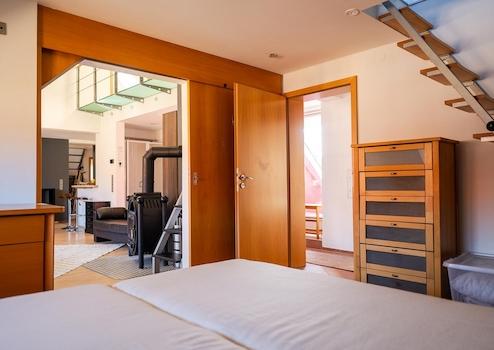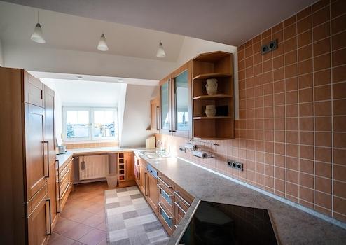komplette Möblierung mit EBK, Ledercouch, Waschmaschine, Trockner, Kamin, TV, Betten, Esstisch samt Stühlen, ausgefallene Beleuchtung