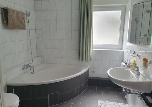 - Großzügiges Badezimmer mit Eckbadewanne und Duschkabine
